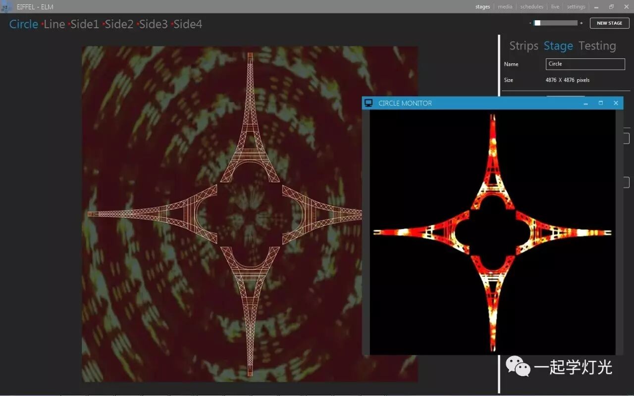 该软件是针对LED灯具控制的,让任何形状和尺寸的布局都能灵活地控制。原理和我之前说的类似,加载媒体文件之后播放就好啦。视频转灯光的控制通道最多达262144个(512的平方),这意味着你基本可以无限制地排放灯具。