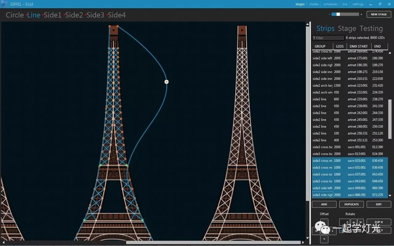 那铁塔上几千或几万个灯是怎么被控制的呢,要是用控台来排列地址码的思路来做的话不仅前期工作太枯燥、低效,后面我想要做效果的话必须有非常灵活的“分组”才行,可是分组多了又跟不分组没啥区别了。