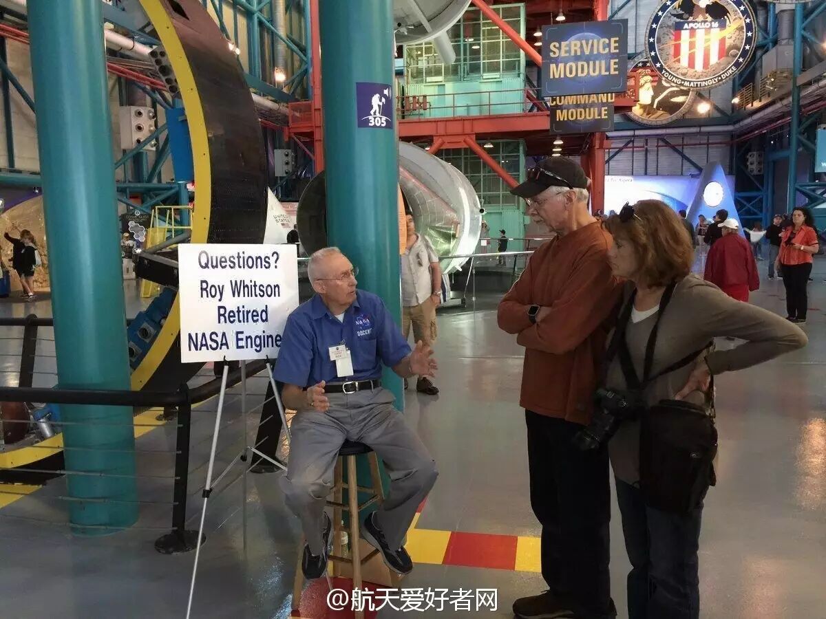 还有一点要闲扯几句的是,,更是一个航天历史的宝库,陈列有大量阿波罗时期和航天飞机时期的珍贵实物。更难能可贵的是,游客在这里经常能够碰到类似图中这种曾真正参与航天工程的退休工程师来义务讲解;,笔者曾在华盛顿特区的航天博物馆中亲见NASA的现役航天员来为游客进行讲解。可能这些客串讲解员的解说词并不那么华丽,也没有特别精心的准备和策划,但是他们真实的经历和丰富的知识既能让游客不远万里前来变得不虚此行,更是对这些曾经为太空探索付出汗水的人的一种尊重。作为对比,文昌虽然是我国着力打造的一个开放式的航天发射场,但是在对游客的友好程度和宣传教育的基础设施水平上,仍然还有一定差距。笔者曾有幸两次前往文昌观看发射,虽然进步是实实在在的,但是想要真正的成为中国的卡角,确实还有一段路追赶。