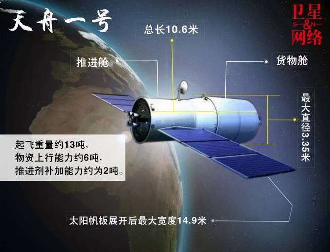 我国的“天舟”货运飞船,简称天舟:6吨(预计于4月在文昌首飞)