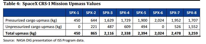 CRS-1到8任务中的货物量,可以看出来,几乎就没装满过