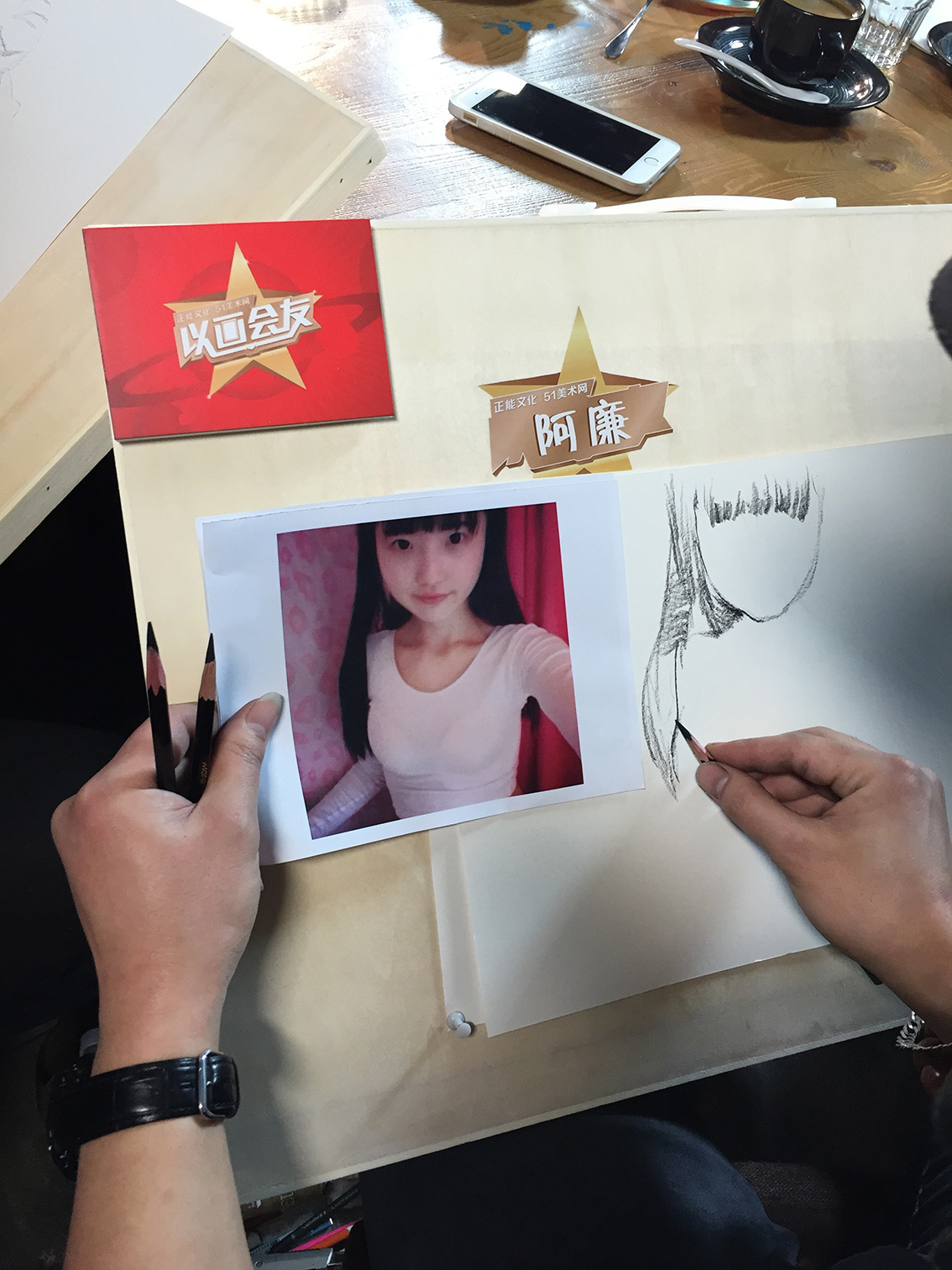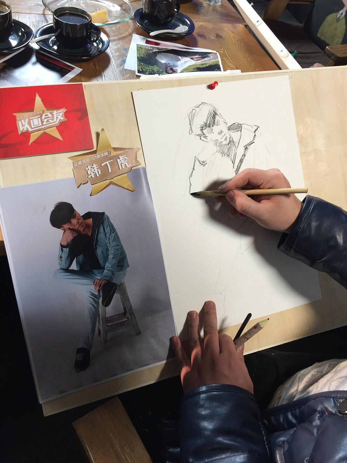 以画会友是由正能文化、51美术网、天启世纪联合推出的速写名师邀请赛,9位速写名师,参战2轮比赛!比拼期间可谓精彩不断!作画时老师们居然还玩起了唱歌接力,边唱边画的场面小编也是醉了~