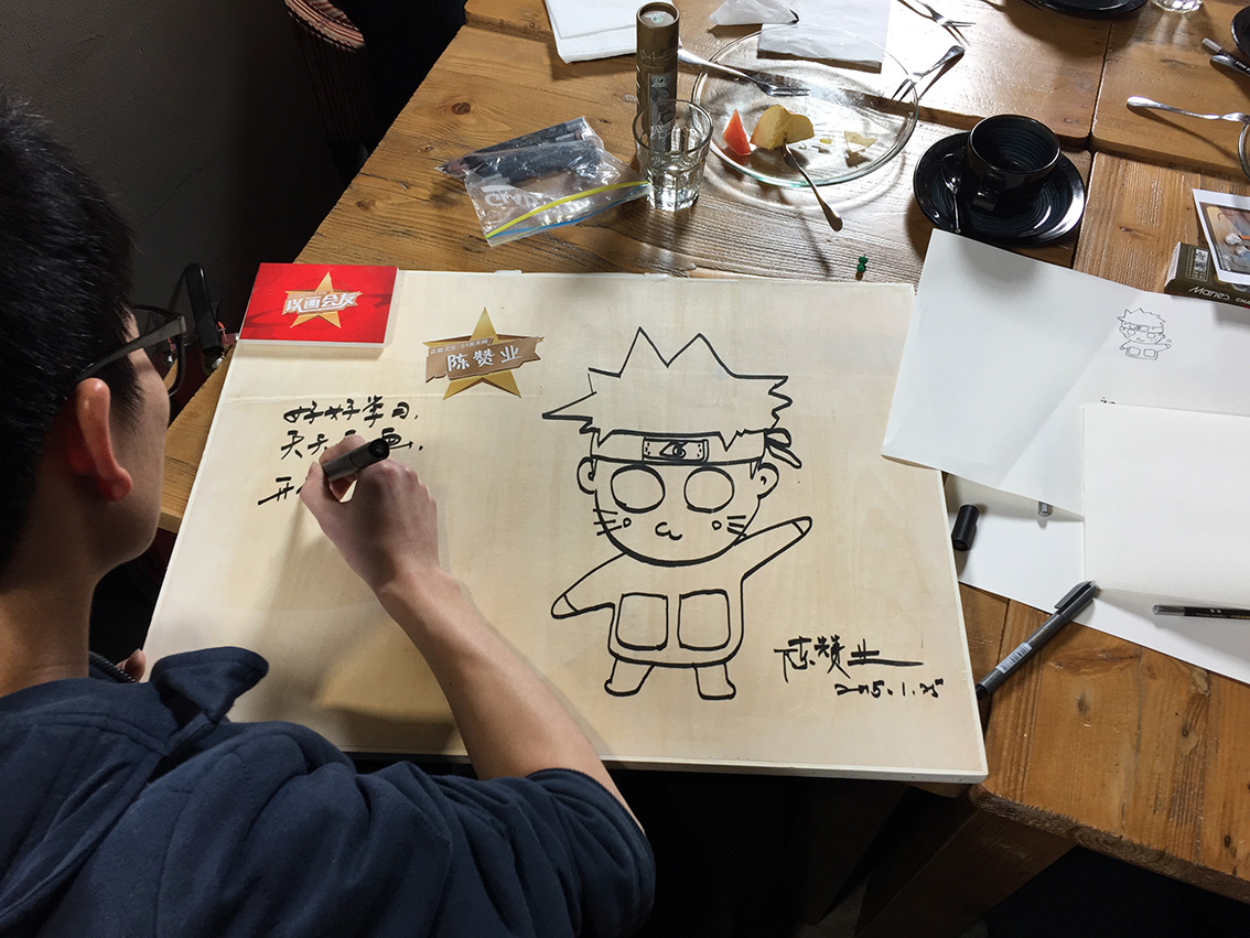 ↑比赛开始了,第一个环节是与童鞋们的互动哦,名师为照片中选者作画并签名寄送,小编也好想要~
