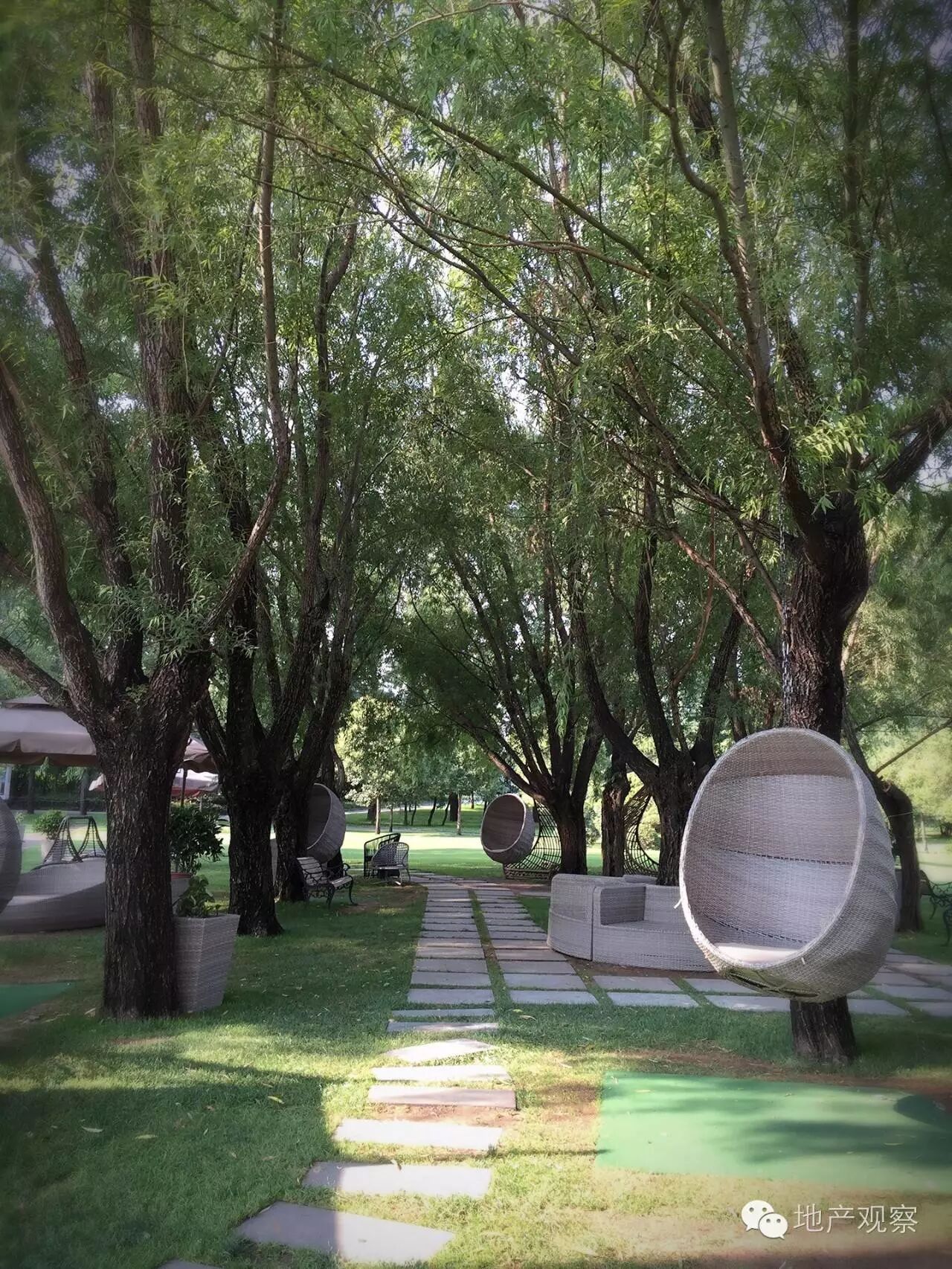 当然,案场的周边,还是会有一些客户去放松的地方,包括户外的休闲区和一个挥杆高尔夫练习场;