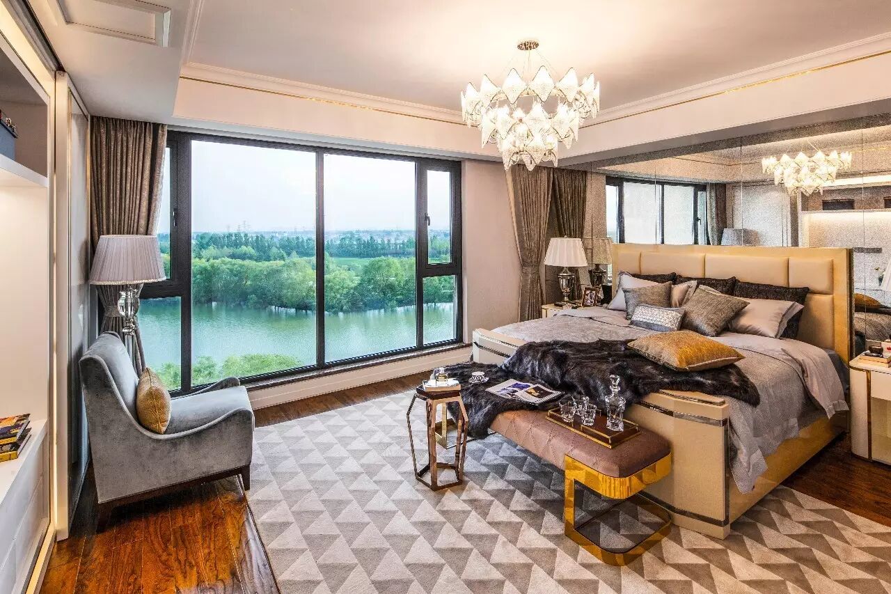 大平层样板间卧室起床的实景是这样的