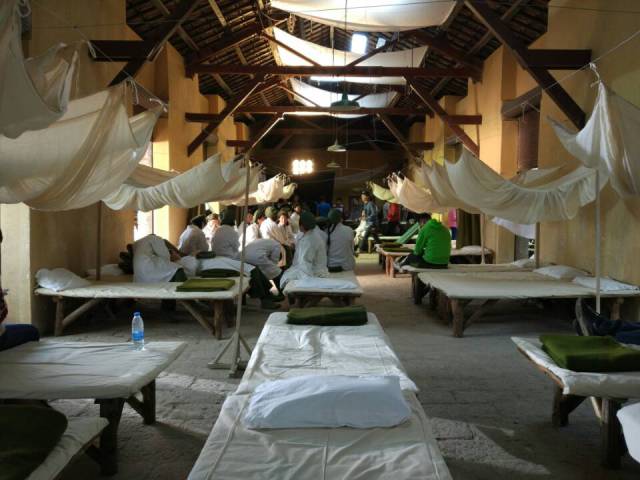 在医疗病房里,病床已经摆好,所有的床单、蚊帐都像极了70年代的复古风。