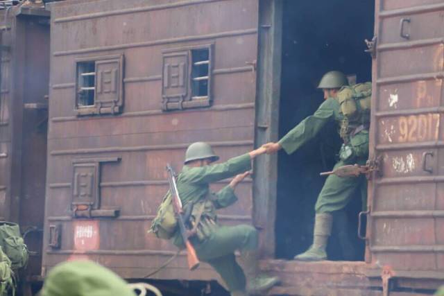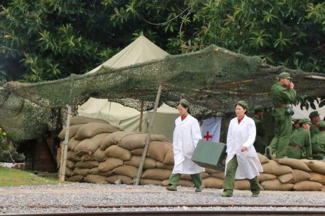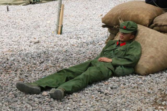 据“探子”回报,今天正式开拍的主要是战争戏,拍摄的是护士抬担架抢救伤员,还有士兵打仗回到营地休息喝水、吃食物的戏份。
