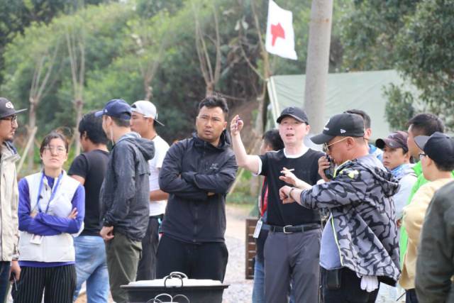 待所有拍摄准备工作就绪后,下午2点左右,冯导亲自来到现场指导拍摄,与一群人站在一起,有说有笑,用亲和而细腻的肢体语言为演员们讲戏。