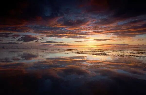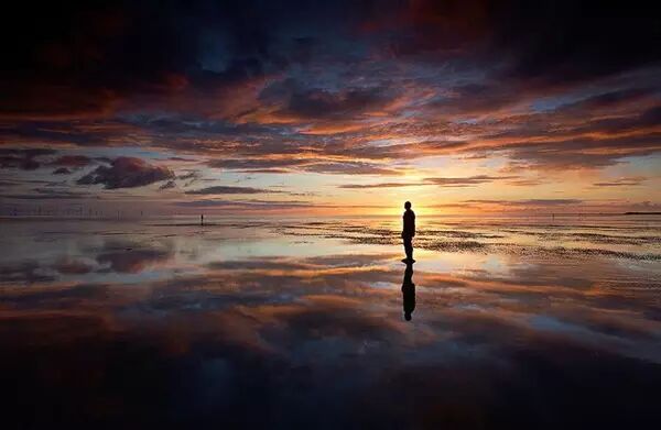 你看见这幅照片的第一视觉落脚点在哪里?我想,绝大部多数人第一视觉落脚点应该都是停留在远方的万缕霞光那里