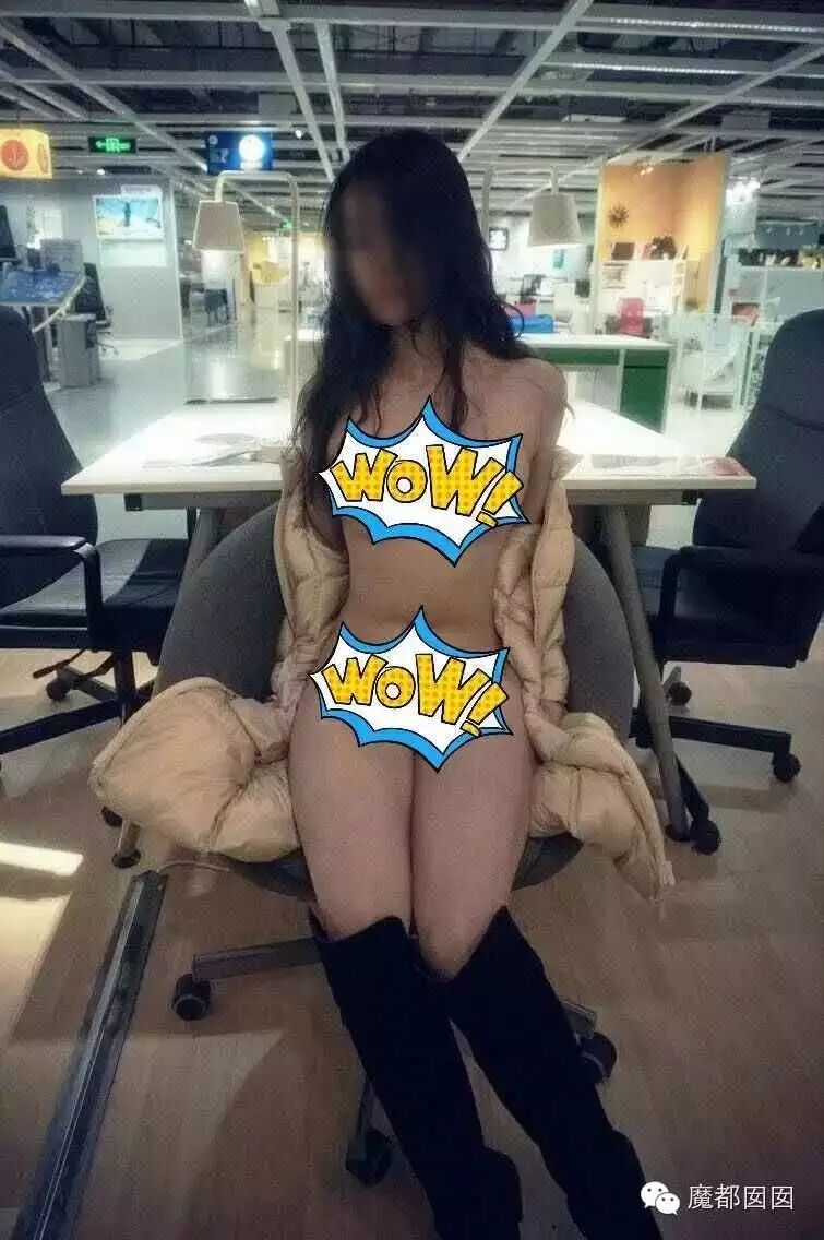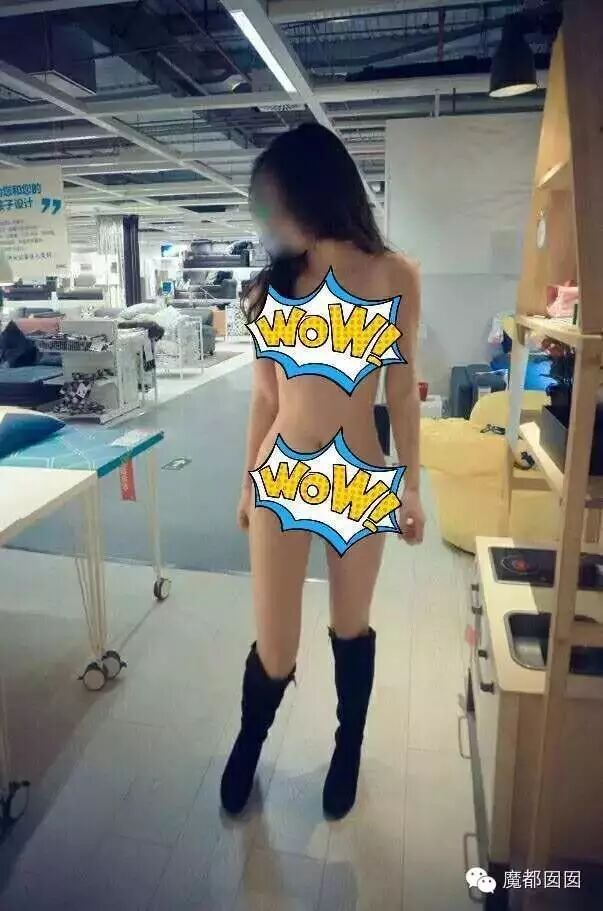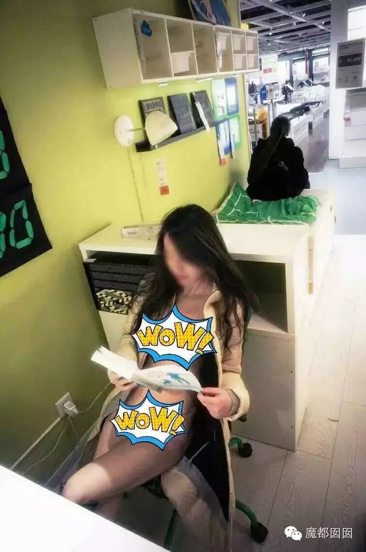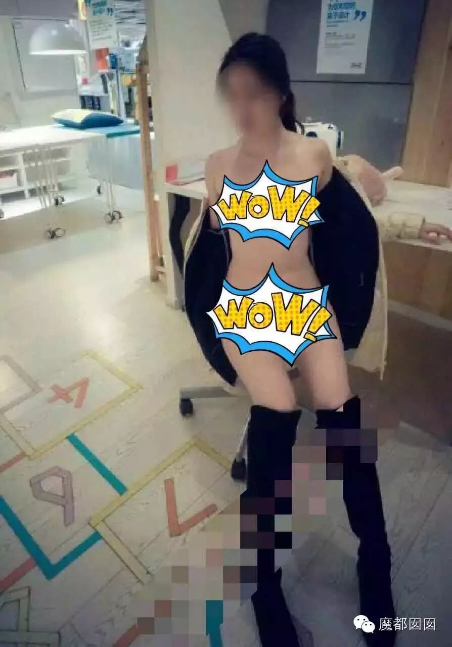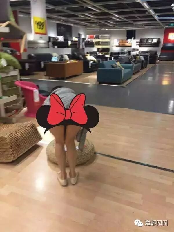 这个很多人都看过了,整个下体完全裸露,根据上海宜家的人来人往很难想象是怎么拍的,电梯后面没人嘛?上面没有人嘛?这个怎么拍?唯一的解释就是一瞬间把衣服提起来然后拍一张再放下