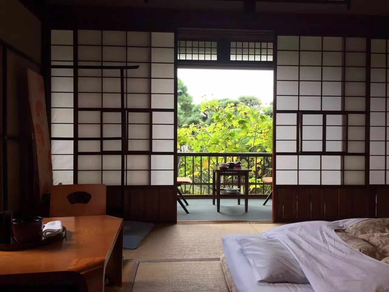 关键是它的住宿价格公道、童叟无欺。这里总共六间房,小津房(Ozu room)是二番,屋里的窗口和阳台都可以眺望窗外的园林景观。一天单人住宿是7800日元(约等于468RMB),一天单人含早餐是9300日元(约等于560RMB),这间房是双人间,两个人的话请乘以二。其他房间差不多也是同样价格,据说,新藤兼人曾住过隔壁的三番。