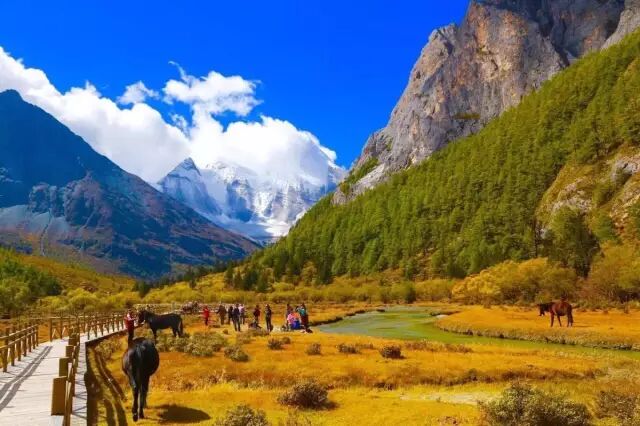 早餐后,从酒店乘车直接到达景区管理站,换乘景区观光车(景区观光车120元/人,费用自理)到扎灌崩进入亚丁核心景区,步行几分钟到冲古寺,欣赏由草地、森林、小溪和嘛呢堆组成的天然冲古草坪,步行欣赏仙乃日脚下的【珍珠海】(藏语意为卓玛拉措),(冲古寺到珍珠海全程往返3KM,可自愿自费电瓶车往返80元/人,单程50元/人,也可步行,步行时间为2小时),此处是欣赏仙乃日的最佳位置。珍珠海传说是仙女的梳妆镜,美丽的卓玛拉措,像一颗镶嵌在莲花宝座上的绿宝石。碧波荡漾,水天一色,云影波光中,透出无限清丽,湖畔四周,参天巨树,苍翠如屏。然后从冲古寺到步行到【洛绒牛场】(约6.5公里,步行2个小时,上山时可远观【夏洛多吉神山】(意为金刚手菩萨)【央迈勇神山】(意为文殊菩萨),观赏野生动物、高山花蕊、雪山森林、冰川、湖泊、河流,体验人与自然和谐相处的天然妙趣。后出景区前往香格里拉镇,入住酒店。(免责声明:如欲朝拜五色海,牛奶海,沐浴茹布查卡原生态无硫磺温泉,此三景点及项目非旅行社正常行程包含,如需游览或参加则费用自理安全自负,并需与导游签订书面协议,与旅行社无任何关系。) 温馨提示: 1、冲古寺—洛绒牛场:6.5公里,电瓶车往返80元/人,单程50元/人;单程约20分钟,客选择徒步,单程1.5小时,游客自愿自主消费; 2、洛绒牛场—五色海、牛奶海:骑马往返300元/匹/人,骑马往返时间约4小时,游客自愿自主消费; 当天游览线路参考: 参考1: 景区观光车—1.5小时—扎灌崩—徒步0.5km约10分钟—冲古寺—步行1小时1.5km—珍珠海原路返回冲古寺—电瓶车6.5km约20分钟—洛绒牛场—原路返回扎灌崩坐景区观光车出景区;第3天:香格里拉镇—亚丁景区—香格里拉镇 (用餐:早中晚) 宿:香格里拉镇