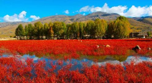 早上从重庆江北国际机场乘坐飞机3U8163(10:25-11:35)一个小时左右抵达稻城亚丁机场(世界最高4410米),安排浏览【海子山】,海子山自然保护区是青藏高原最大的古冰体遗迹,以“稻城古冰帽”著称于世,独特的景观是大大小小的的花岗石漂砾(砾石)组成的石河、石海及形态各异的冰蚀岩盆(海子),目光所及没有树木、河流,就连野草也只是偶尔丛生,“蛮荒”得像是火星表面。然后停靠稻城县桑堆乡高原补给站(高原旅游知识宣传点)时间10-20分钟。之后继续前行,朝拜藏传寺庙【邦普寺】(约30分钟),途经【红草地】(注:红草地为季节性景观,只有在每年的9月底到10月初才能看到此处的草原呈红色),之后参观藏寨与藏民零距离接触,客人走进藏家体验藏民民居生活,(约1个小时)之后,午餐后观傍河风光、赏万亩【青杨林】,观【色拉草原风光】,翻越波瓦山,欣赏迷人的赤土河谷风光,傍晚左右抵达香格里拉镇入住酒店。(晚上客人可自愿选择参加日瓦【走进藏家歌舞晚会】(180元/人,费用自理),或者参加【藏家土火锅篝火晚会】(280元/人,费用自理)若不想参加,则随意闲逛或惬意休息。)第2天:重庆—亚丁机场—香格里拉镇 (用餐:中晚) 宿:香格里拉镇