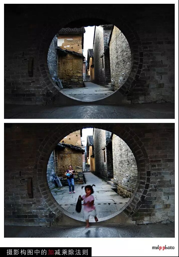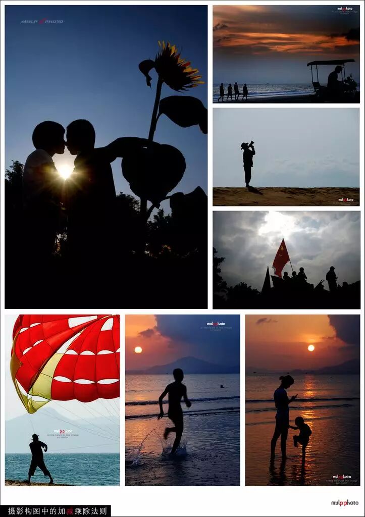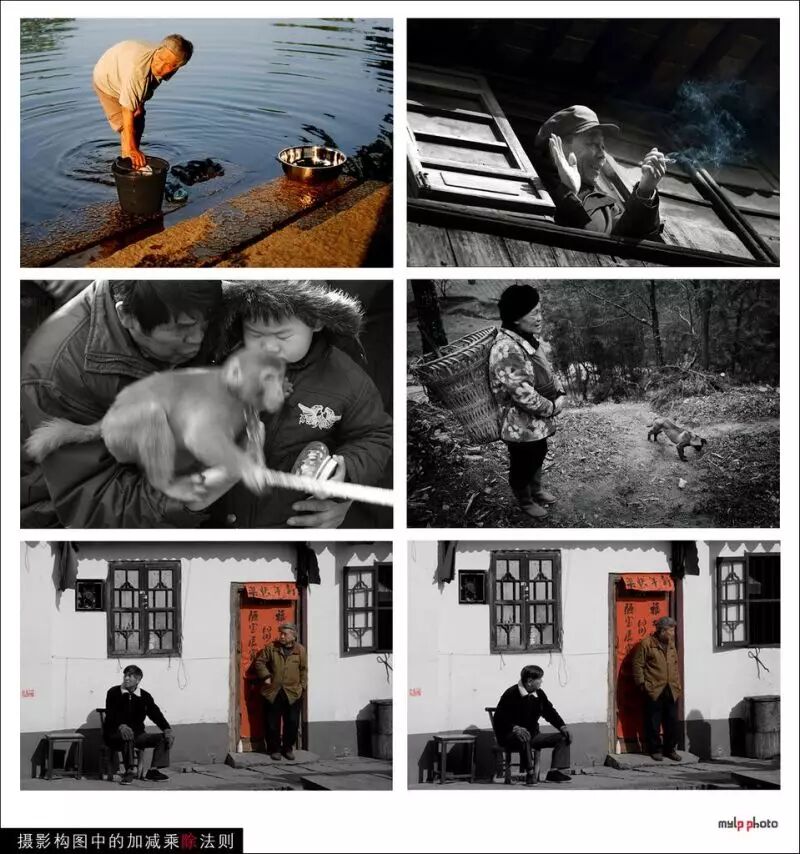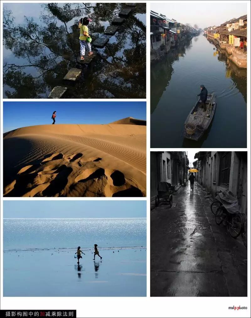 加入的元素可以成为画面的主体,也可以不是,但能起到很好的烘托作用,或者是有利于气氛的营造,或者是有利于画面 的平衡,等等。在风景和小场景题材中也许用得更多,比如加个人,加个动物,加个前景什么的。我始终有个观点:风景 往往是死的,它也许很美,每个人站在那里都能拍出差不多样的片子来,不过,一旦加入了人的参与,它就马上变得 活灵活现充满生机,而且会让你的作品独一无二不可复制。人与自然是永恒的主题,人是世界上最美的风景!所以我拍片 时经常会有意识地加入人的元素。 教科书上经常会提到衬托与对比的手法,其实这也是一种加法。就是加入一个与主体有某些相关的元素,使得主体的形象 和个性更加鲜明,让你表达的主题得以强化等。这是一种相当常见的手法,一般都能产生很好的效果。对比的元素 包罗万有,应用极为广泛,有人物的对比,颜色的对比,材质的对比,明暗的对比,大小的对比,冷暖的对比,虚实的 对比,甚至是情感的对比等等。很多东西不比不知道,一比吓一跳,对比产生美,对比产生故事,对比产生新的认识。。。
