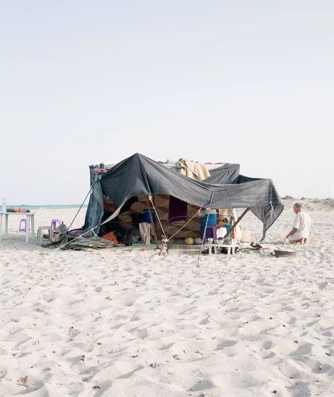 虽然帐篷是临时搭建的,而且还非常简陋,但摄影师却从中发现了某种诗意。人们来这里度假或生活,享受美好时光,而世界上还有一些地方处于战乱中,但这个岛却充满了宁静,因为这里有和平。