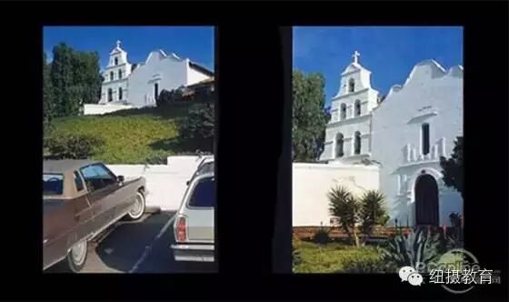 再看这两幅图,我们可以看到左边那副由于纳入了下方的车子,让整个画面的主题发生了偏差,到底你是要表现房子呢?还是车子?但是当你把镜头焦距调高,从而压缩视觉空间让车子消失之后,“房子”的拍摄主体就自然出现了。