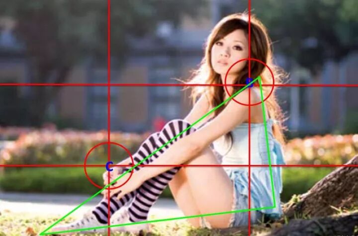 黄金三角形构图的原理与三分法的规则非常相似,然而,黄金三角的规则是从一个角到另一个角的对角线,而不是一个矩形网格。