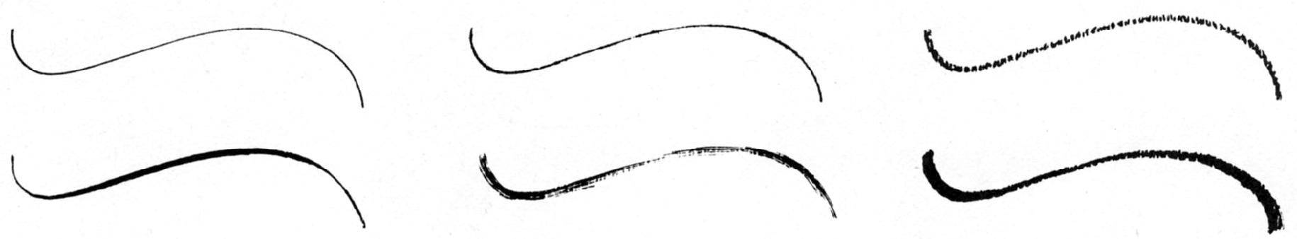 使用不同的工具,蘸上墨水进行试验,看看结果如何。用刷子: