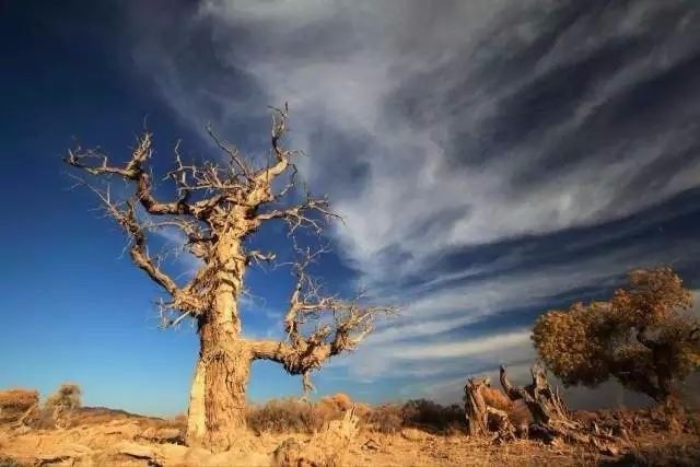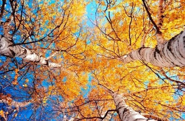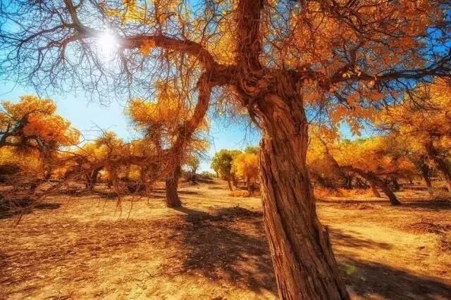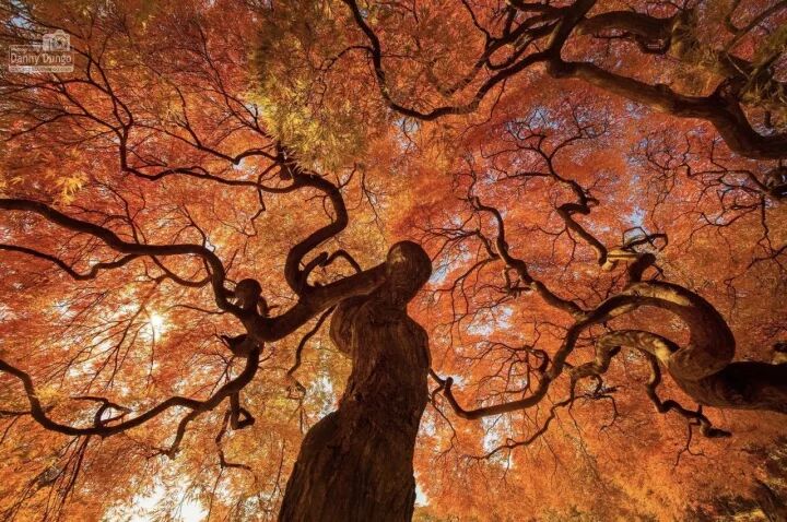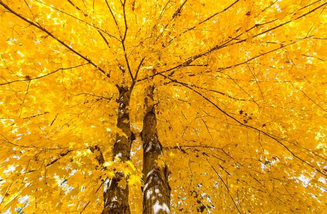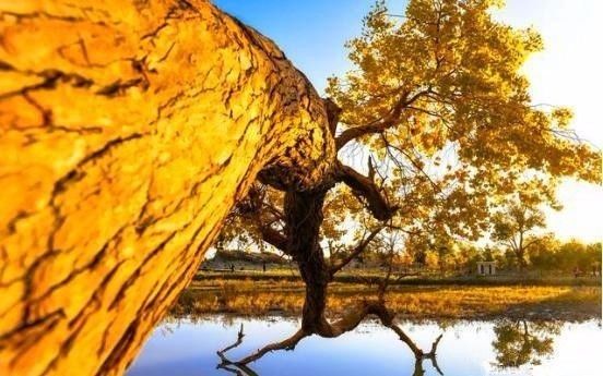 仰拍显得比较高大,主要拍树的形状。用小光圈对焦画面的三分之一处,才能将远景、近景拍的都清楚。
