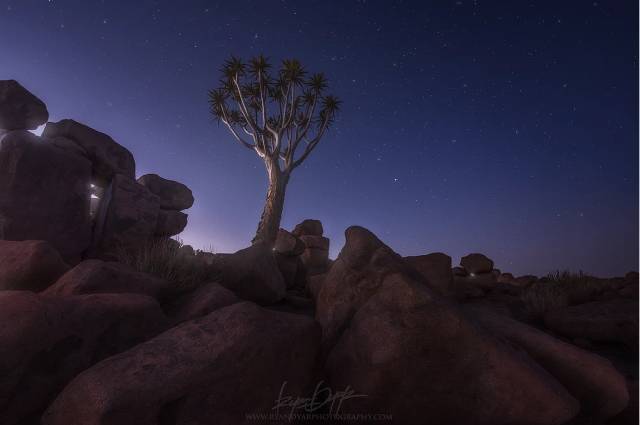 在白天拍摄赵屯夕阳,也可以在夜晚月光星河。如果要求画面自然,不损伤画质,可以固定机位借助月光拍摄地景,等月亮落下再拍摄星空,通过后期合成即可。