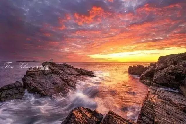 △【晨醉】ISO100,光圈22,焦距14毫米,32倍减光镜,曝光时间分别1/2秒,5秒,10秒,对天,海涯,海水进行曝光,后期合理曝光合并。大家可以注意观察日出前后的光线变幻,以及云霞颜色的变化,为将来采风有帮助。