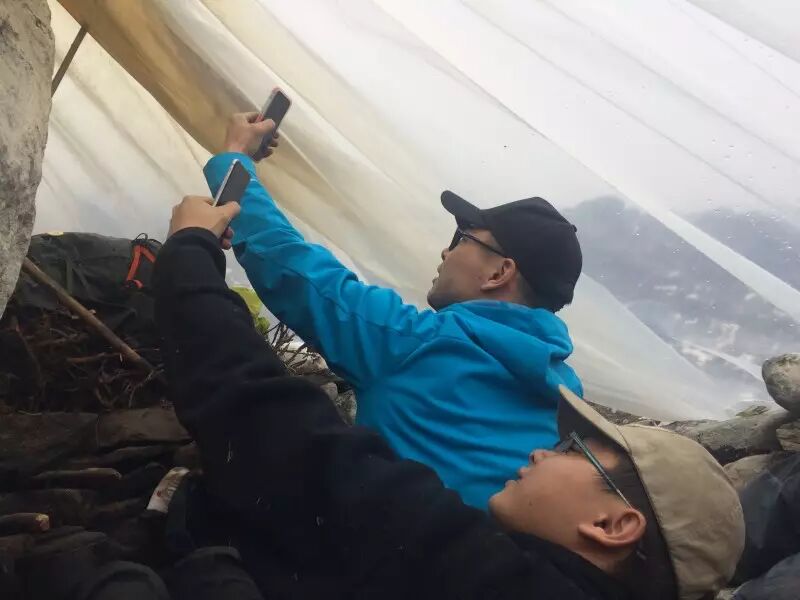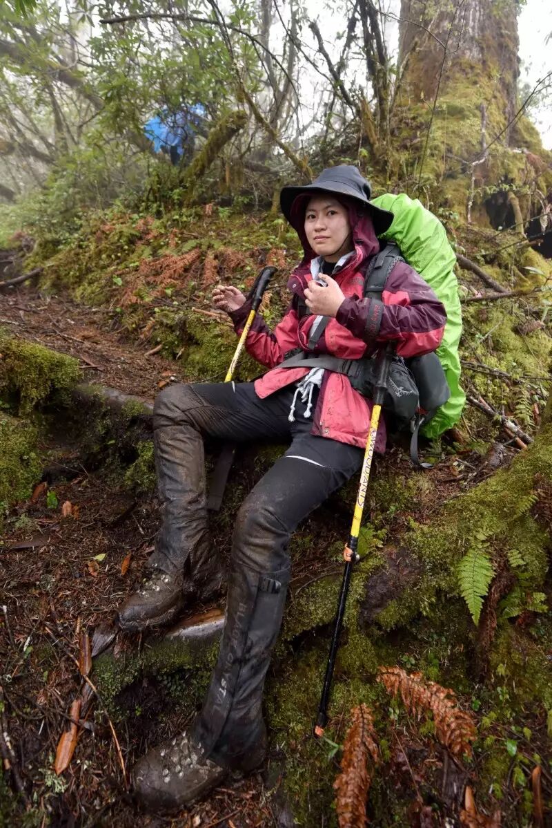 进山第一天所有人毫无意外的都湿了,之前看攻略说会有七十度大陡坡,结果没想到一路全是七十度大陡坡,这路在天晴的时候爬行就挺艰难的,何况是在雨天。