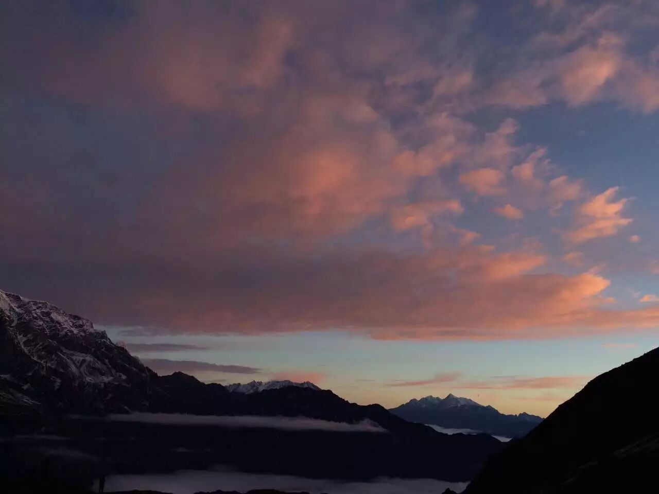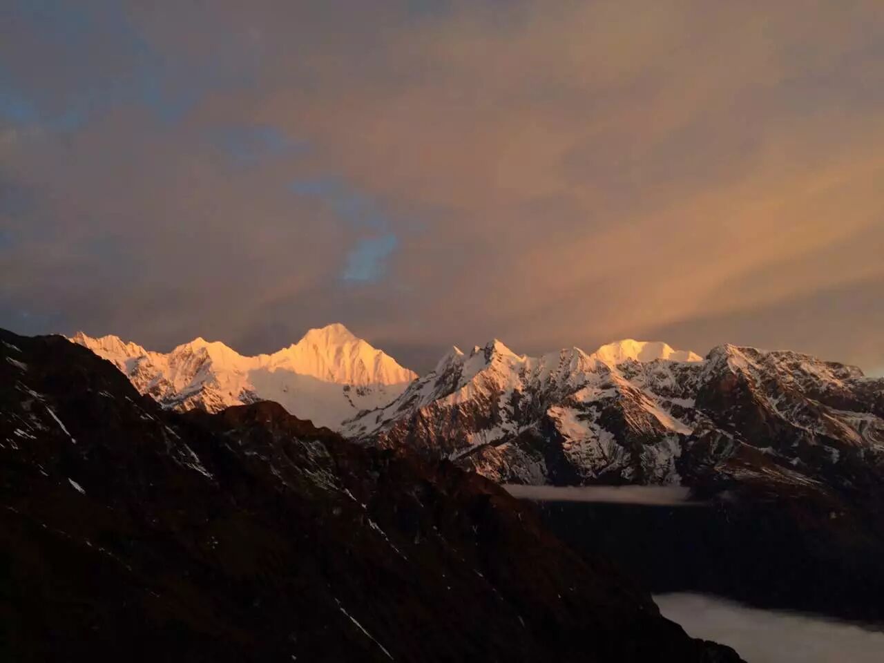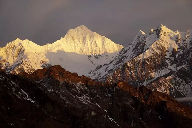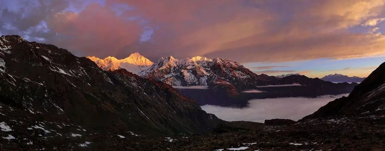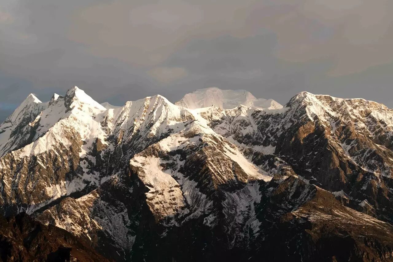 本期给大家介绍的秘境,名叫二层山,位于贡嘎山东坡海螺沟景区旁,与贡嘎主峰的直线距离仅5公里,可媲美贡嘎山西坡的最佳观景点子梅垭口。如果站在二层山顶朝大冰瀑布方向望去,主峰贡嘎山和其海拔超过7000米的卫峰一览无余,元宝山、神鹰峰等簇拥着贡嘎主峰,极其壮观。