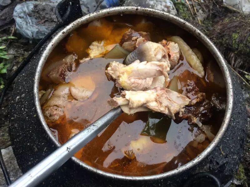 下午我们躺在透明帐篷里悠闲烤火的时候,回想起第一天的路程,真是虐到无话可说,却听向导说接下来的路程一点也不比第一天轻松,要不是这用水壶熬出来的鸡汤给小编激励一下,那心里只剩下“一万匹草泥马”了。