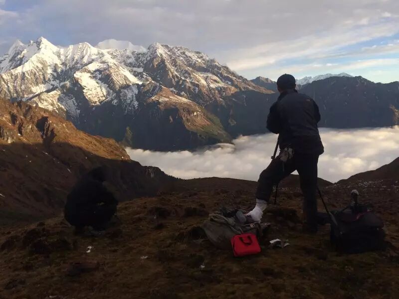 关于脚,还有一个小插曲,我们的另一位摄像小哥,一大早为了给大家呈现日照金山的完美画面,从帐篷里冲出来时咔擦一下崴了脚,到今天还没消肿,这种敬业的态度,绝对得加十个鸡腿!
