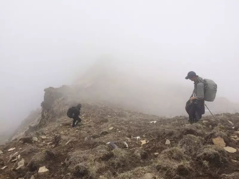 根据前两天的规律,山上的天气上午十点以前还能稍微看到阳光,十点之后大雾起来就什么都看不到了,我们十一点快走到垭口的时候,当地的向导也因为看不清方向,不知道该往哪走了。
