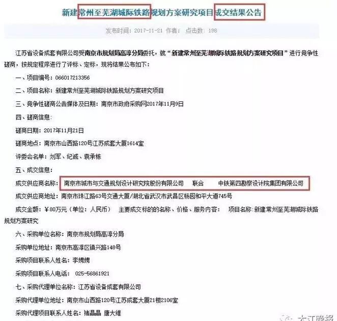 近日,在南京市政府采购网上,公布了新建常州至芜湖城际铁路,规划方案研究项目成交结果,这意味着这条与芜湖相关城际铁路,将要进入实际规划阶段。