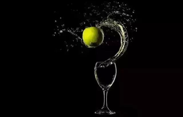 在玻璃器皿中倒入液体,如红酒、啤酒、橙汁等,用投射布光的方法可以提高液体的色彩饱和度,从而获得浓艳的色彩效果。