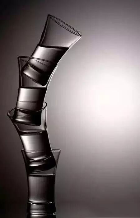 构成的反射光就会勾出顶部杯口的黑线。也可以将背景换成白纸,灯光直接打在背景上,形成反射,照亮玻璃杯,使其产生杯体通透,呈现黑色轮廓线条的效果。