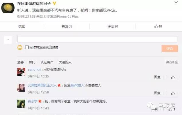 也有网友戏称:听人说,现在相亲都不问有车有房了,都问:你家能玩VR么。