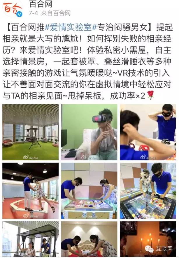 作为婚恋全产业链领导者的百合网近日推出了全国首家“爱情实验室”,同时还首次引入VR技术,为相亲男女们带来了不一样的相亲体验。