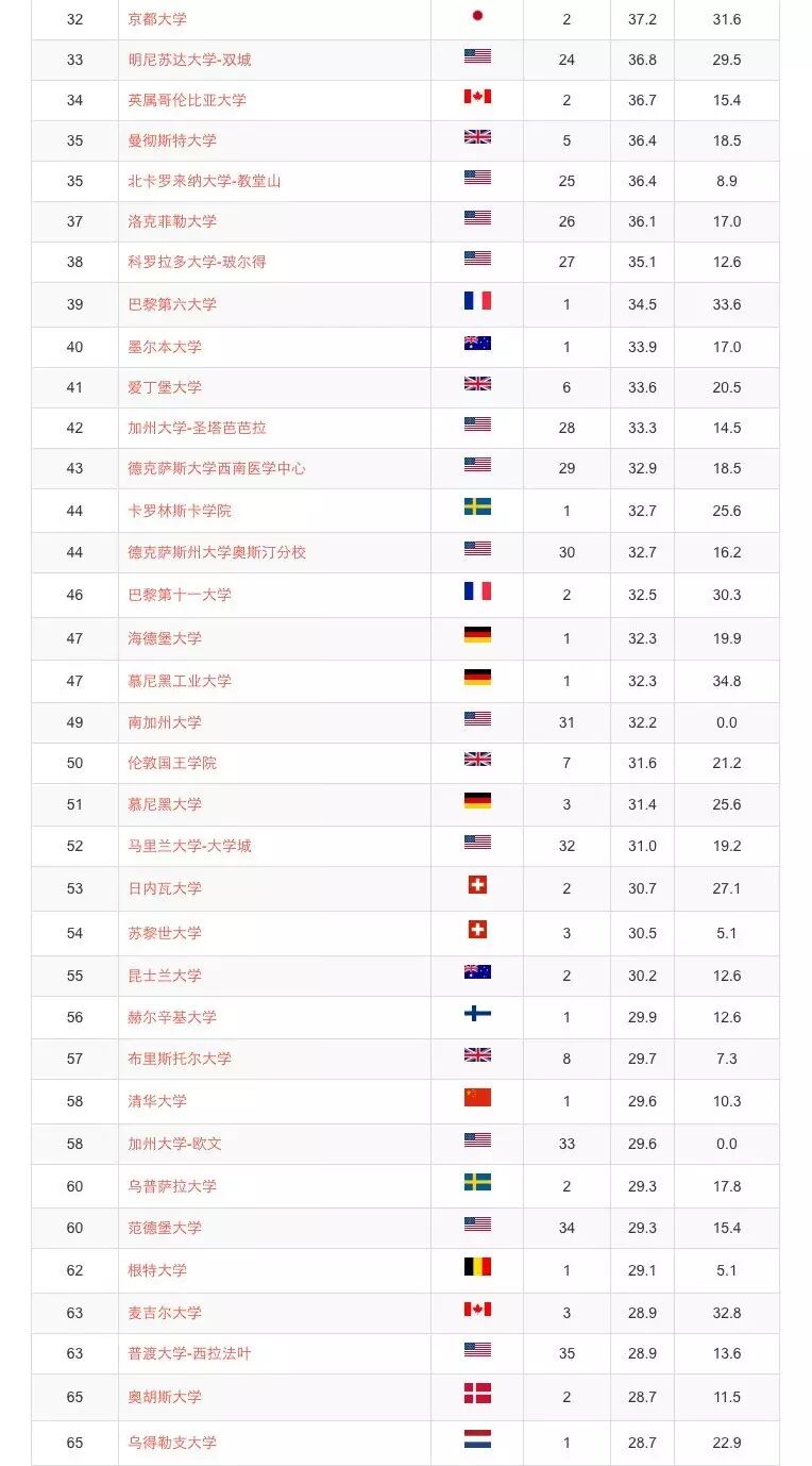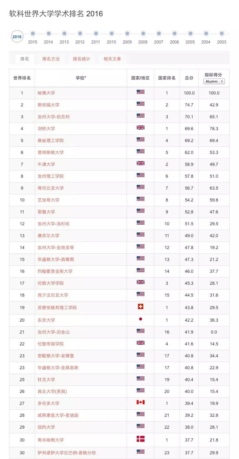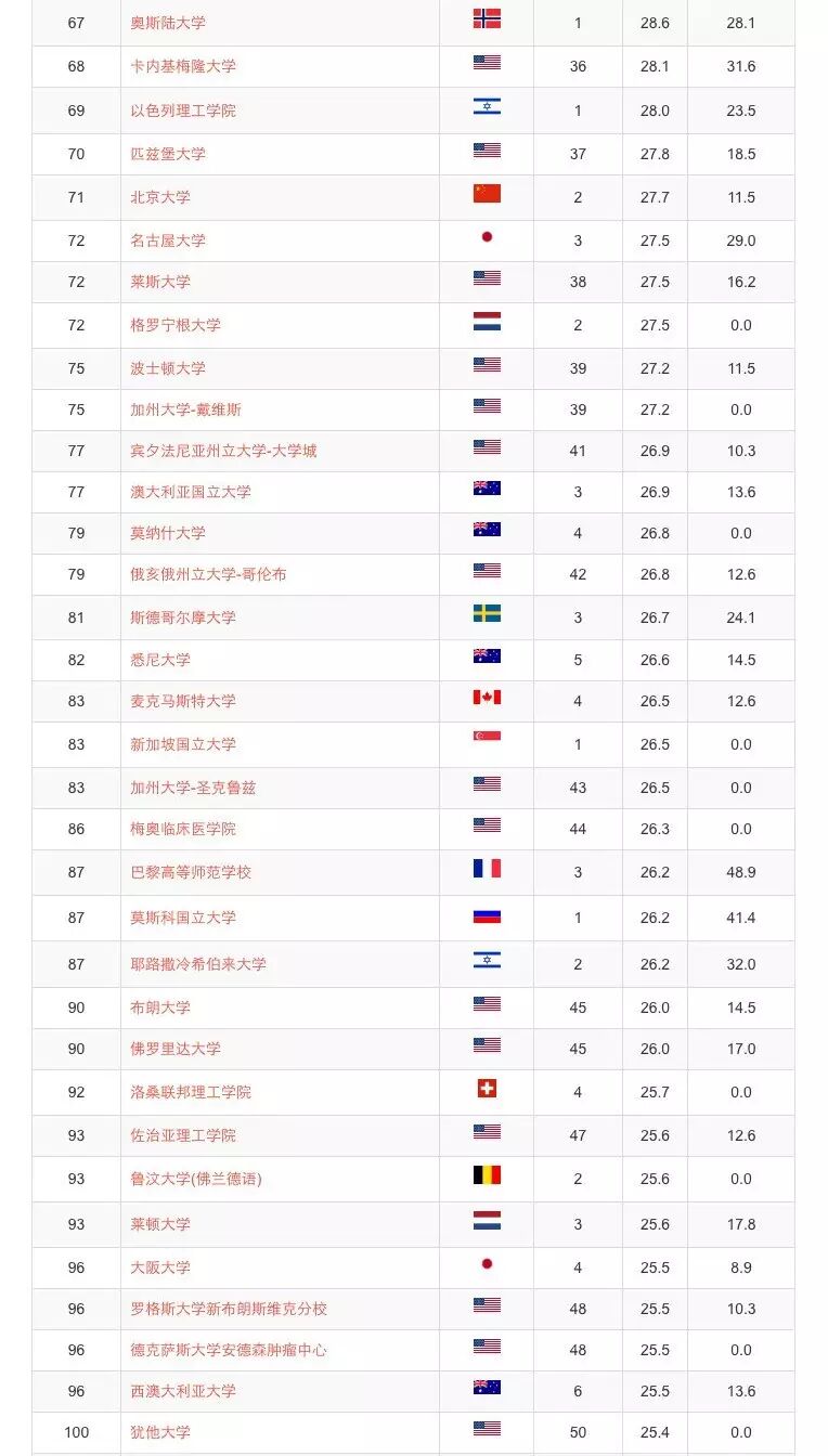 软科世界大学学术排名(ShanghaiRanking’s Academic Ranking of World Universities,简称ARWU)前一百名如下: