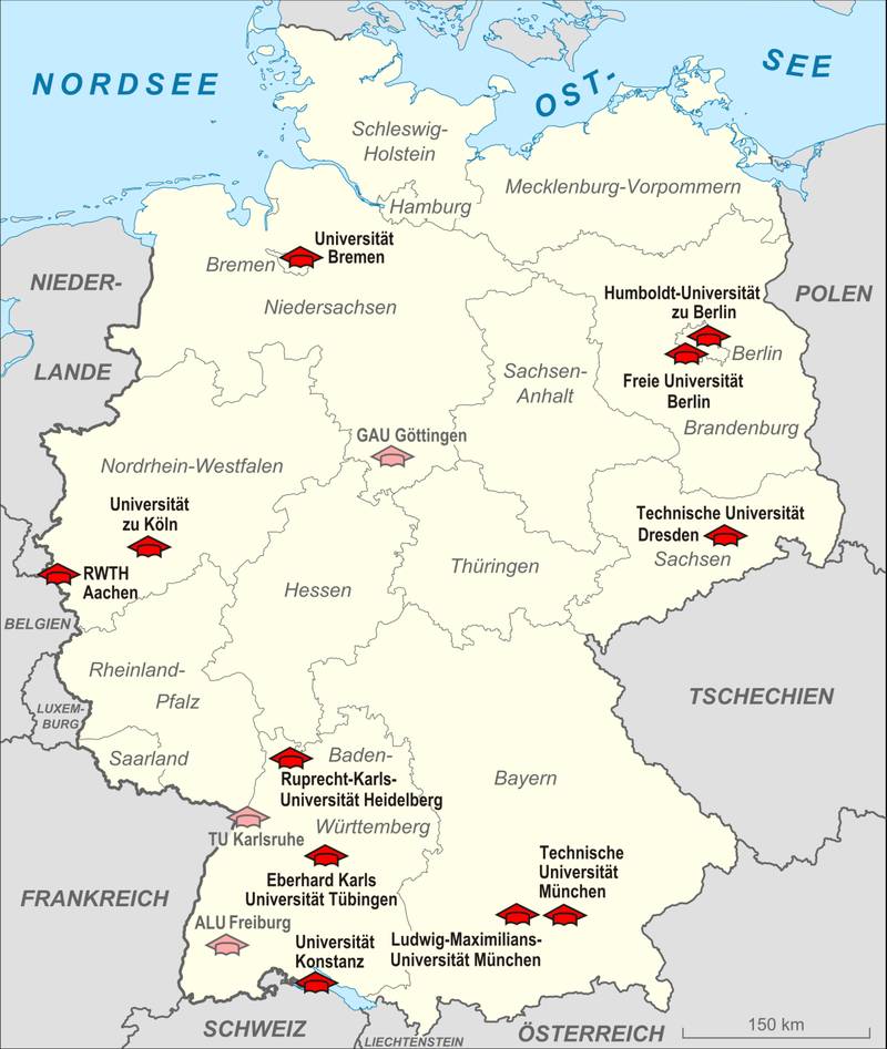 三所入围百强的德国大学亦在德国十一所精英大学(Eliteuniversität)之列。
