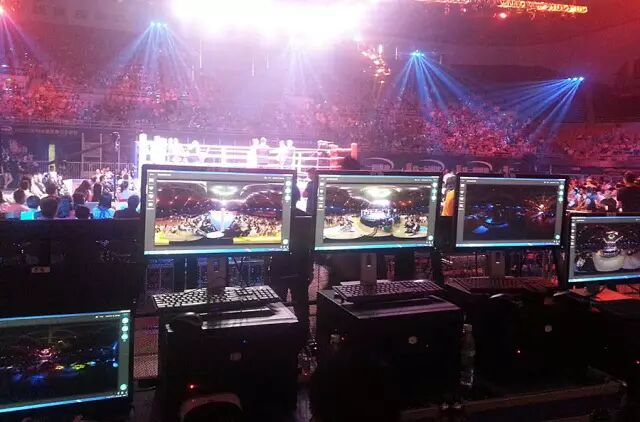 来自强氧科技的十五人VR全景团队,经过三天预先搭建、现场模拟等,优化出了八机位场内场外的VR拍摄方案,而且在拍摄设备选择上,强氧首次采用了旗下第三代VR全景摄制系统(三目方案),直播现场亦由二代、三代VR系统配合完成,八机位采集且自由切换,真正地为观众带来了一场别样的、高品质、高质量的格斗赛VR直播。