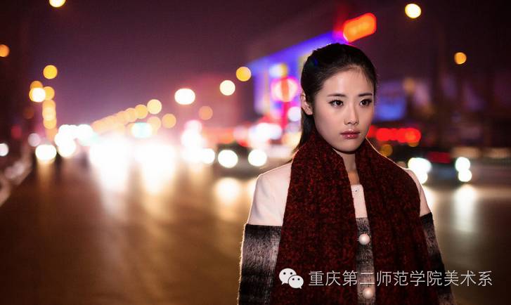 一般而言,夜景人像拍摄难度比较高。在夜晚,自然光降低到最低或消失,人物的照明完全要依靠人工光,而自然的人工光线(路灯、橱窗光、店灯)色温比较复杂,同时照明度也很难满足人像合理曝光的需求。因为,往往一个场景会有多种光源照射,处理不好就会显得非常杂乱。如果采用户外的摄影灯具拍摄,又会面临器材笨重、摆放麻烦等问题,在人像摄影的范畴里,人工布光与模特自然状态的抓拍始终是一对矛盾体。人工布光的位置固定下来的同时,也在角度、光比等方面对模特的自然表达形成了限制,很多随机的、表露特定情绪的瞬间和多变的拍摄角度,会由于相对固定的布光而被迫牺牲。