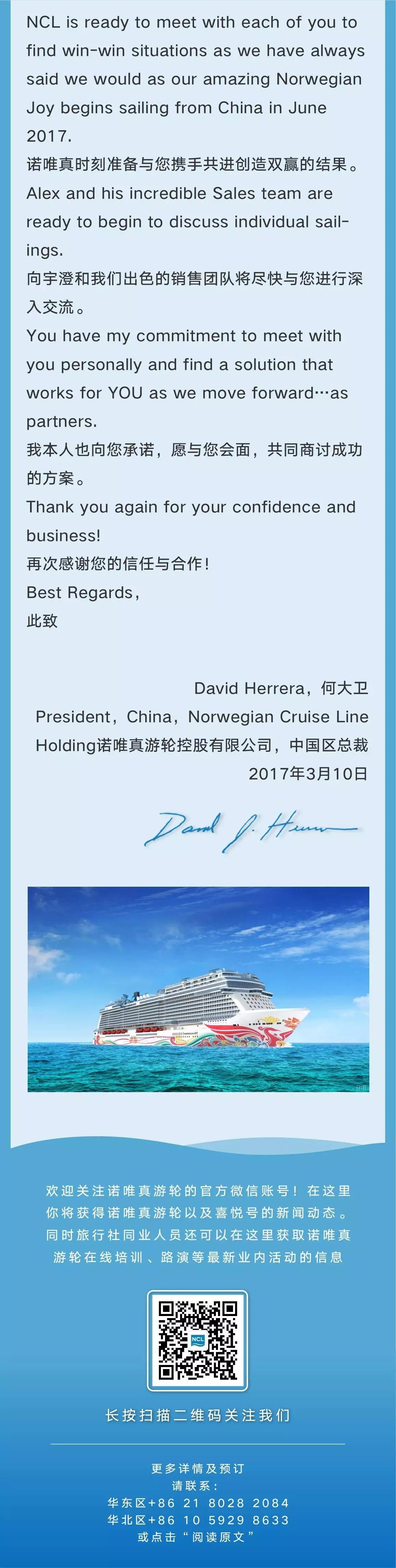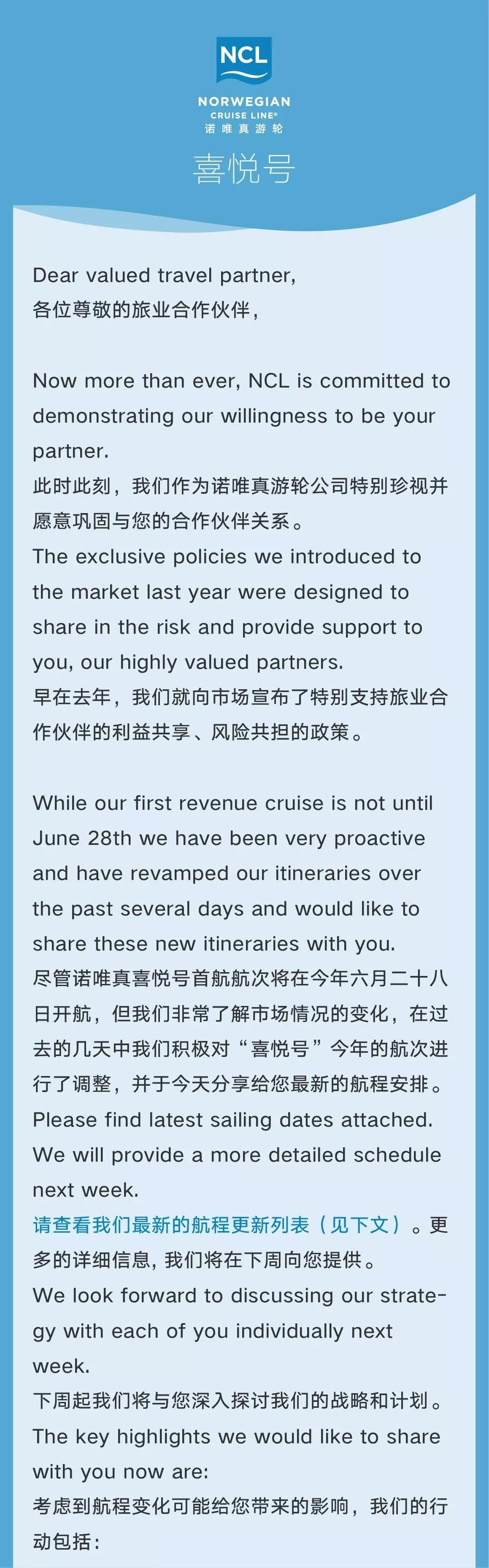 *详细行程安排将于诺唯真和旅业合作伙伴的下周会面中提供。