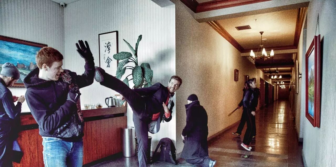 Troy:我是一个比较传统的人,前几年在无人机开始展现出其在电影制作中的优势的时候,我还是觉得它无法代替传统的地拍摄像器材。直到这次,我发现在画质上有了质的飞跃后的无人机,真的能够取代斯坦尼康和大摇臂去实现电影拍摄过程中的更多可能性,制作效率也随之大幅度提升了,尤其对于打斗片来说。这次能从平地到狭小的楼道,再到三楼的平台,一气呵成地完成这一系列的武打镜头的拍摄,不管是从视觉效果上,还是故事连贯性上,都给我们的观众带来了前所未有的体验。而且对于资金比较紧张的拍摄团队来说,无人机可以保证画质的同时还能减少不少开销呢哈哈哈。