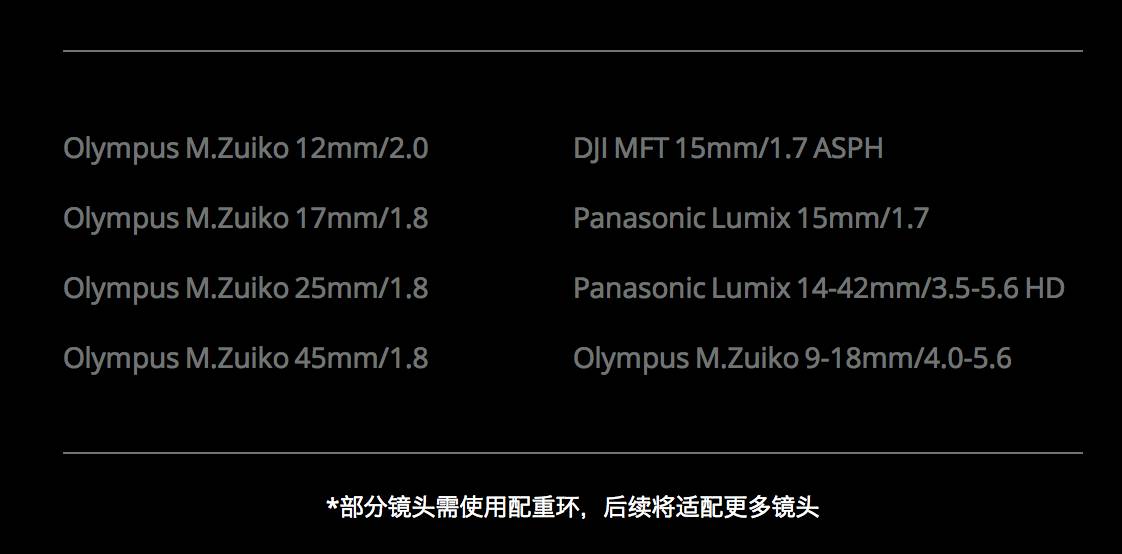 “悟” Inspire 2 支持使用DJI无限跟焦器进行精准调焦,禅思X5S支持8款包含变焦镜头在内的标准M4/3镜头,焦段覆盖9mm到45mm(35mm画幅等效焦距为18mm到90mm)。