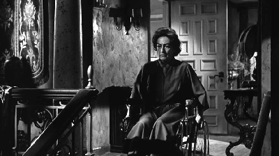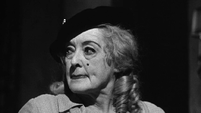 门栏的镂空图案变成一颗❤,再由一把利剑划过,给出片名“宿敌”。一个蒙太奇转场,❤变成《兰闺惊变》中“宝贝简”(贝蒂·戴维斯 饰)脸上的一枚痣。没错,《兰闺惊变》中简的那枚痣就是❤形。