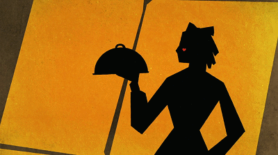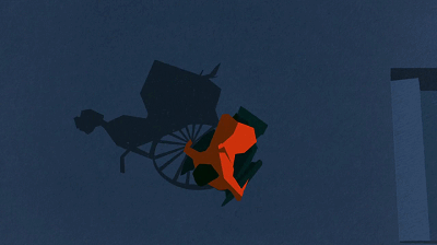 随“FX出品”字样出现的第一个图案是明晃晃的车灯,径直撞向一个女人,这是《兰闺惊变》开场的重头戏。然后女人一个侧翻,转化成一名女子将另一女子踢下好莱坞山,你并不能分不清她们谁是谁。设计师有意模糊两个女人的身份,让她们以没有任何特征的剪纸轮廓,出现在关键的情节点中。