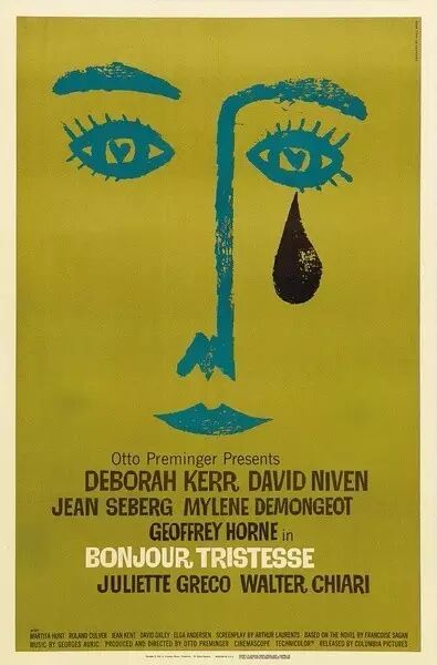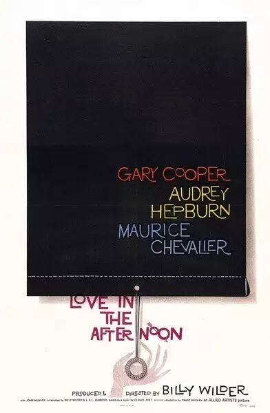 整个片头设计,色调由红、蓝、黄、紫、黑构成,这也是索尔·巴斯的经典配色,他几乎是逃不开这几款用色,可以参考《黄昏之恋》(Love in the Afternoon,1957)的海报。