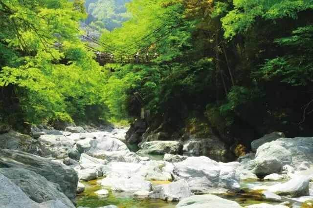 作为日本三大奇桥之一,祖谷葛藤桥整体由天然葛藤与木材制成。隐藏在山间密林中,分外神秘。站在桥上听着吱吱呀呀的声响,感受桥身的摇晃,刺激惊险,其乐无穷。
