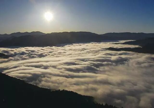 若是天公作美,在秋季到初冬以及早春时节,连绵云海覆于溪谷上漫无边际,群山隐约恍若置身仙境。