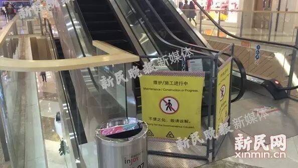 记者在现场看到,商场出事电梯已放置“维护/施工中”的告示牌并停止运行,涉事自动扶梯两旁除扶手外并无其他防护措施,离地约在8米高左右。有商铺人员回忆,事发时男婴是直接坠落至地面。