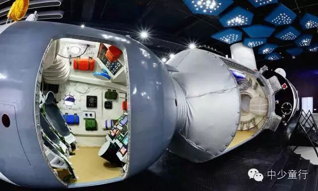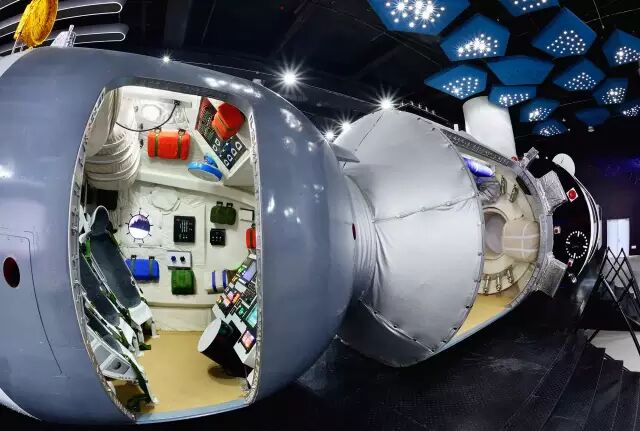 重头戏来了!“天宫一号”与神舟飞船亲密拥吻,是国内唯一以1:1比例还原对接的互动体验舱。