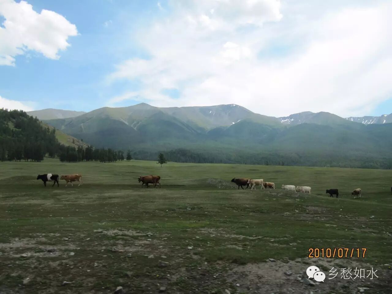 继续前行,前面迎来了一片广袤的草地,翠绿油亮的草丛中散落着无数红、黄等不知名的小花,成群结队的牛羊在阳光下悠闲地吃着青草,牧民们的帐篷顶上升起了袅袅炊烟,美景让人目不暇接,如醉如痴。林深树密,公路伴着一条清澈的小溪弯弯曲曲地延伸,似乎没有尽头,两旁许多大树倒地横卧,树身上长满了苔藓,间杂着朵朵蘑菇,没有任何人为砍伐的痕迹,唯有空气中弥散着难以言表的大自然的清香。
